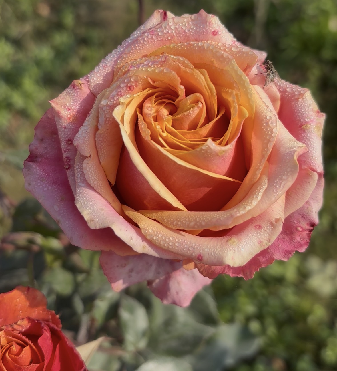 Dutch rose, Rusty orange with reflexive inner orange, lasting flower, 45+ petals.